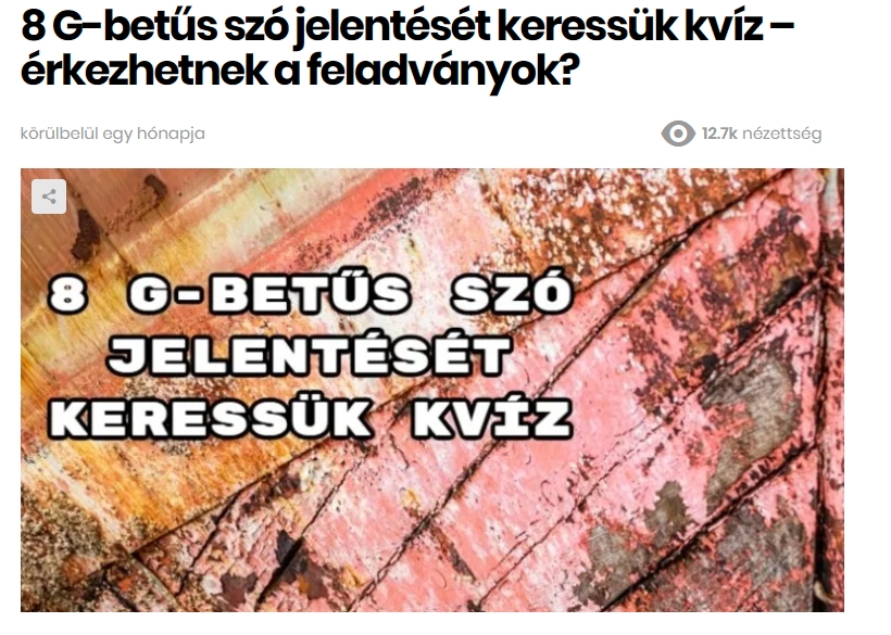 A Kvízmester.comon megjelent a 8 G-betűs szó jelentését keressük kvíz – érkezhetnek a feladványok?