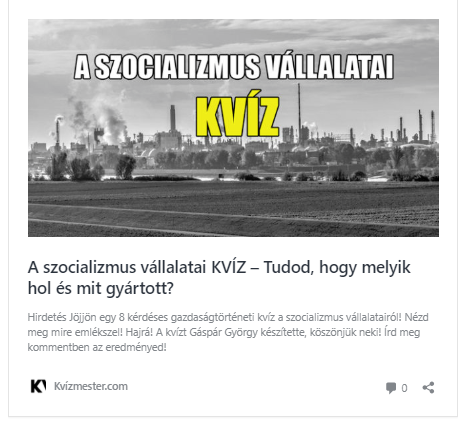 A Kvízmester.comon szeptemberben megjelent A szocializmus vállalatai KVÍZ – Tudod, hogy melyik hol és mit gyártott?.