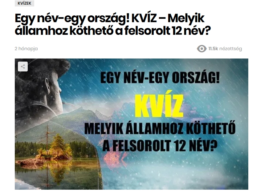 A Kvízmester.comon megjelent az Egy név-egy ország! KVÍZ – Melyik államhoz köthető a felsorolt 12 név?