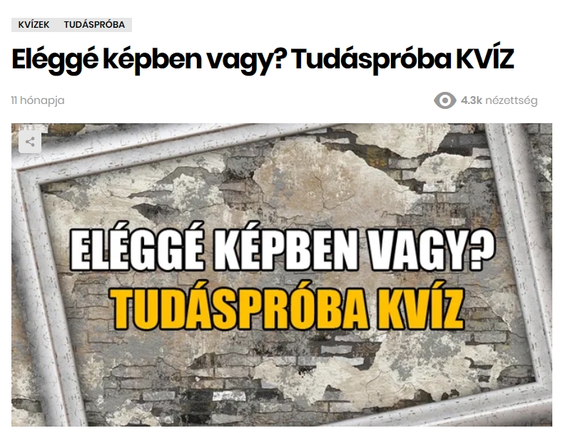 A Kvízmester.comon megjelent a Eléggé képben vagy? Tudáspróba KVÍZ.