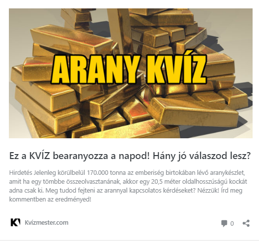 A Kvízmester.comon megjelent az Ez a KVÍZ bearanyozza a napod! Hány jó válaszod lesz?.