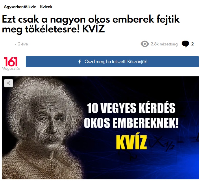A Kvízmester.comon megjelent az Ezt csak a nagyon okos emberek fejtik meg tökéletesre! KVÍZ.