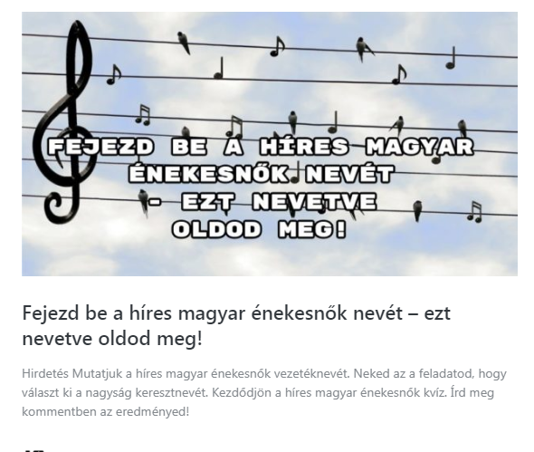 A Kvízmester.comon megjelent a Fejezd be a híres magyar énekesnők nevét – ezt nevetve oldod meg! KVÍZ.