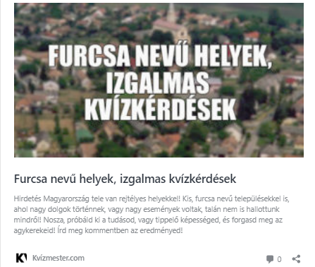 A Kvízmester.comon megjelent a Furcsa nevű helyek, izgalmas kvízkérdések kvíz.