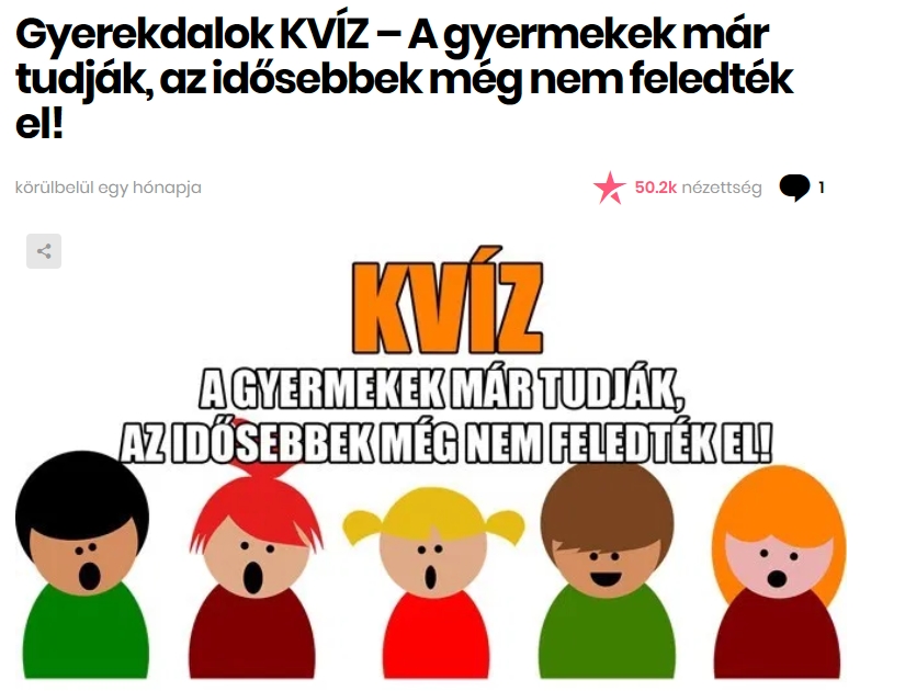 A Kvízmester.comon megjelent a Gyerekdalok KVÍZ – A gyermekek már tudják, az idősebbek még nem feledték el!