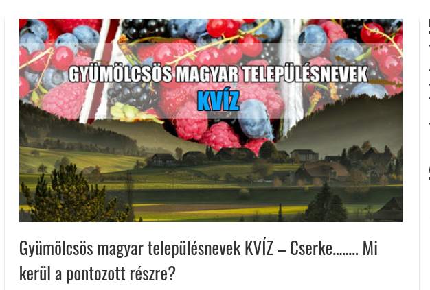 A Kvízmester.comon megjelent a Gyümölcsös magyar településnevek KVÍZ – Mi kerül a pontozott részre?