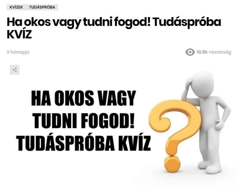 A Kvízmester.comon megjelent a Hány jó válaszra vagy képes? Tudáspróba KVÍZ.