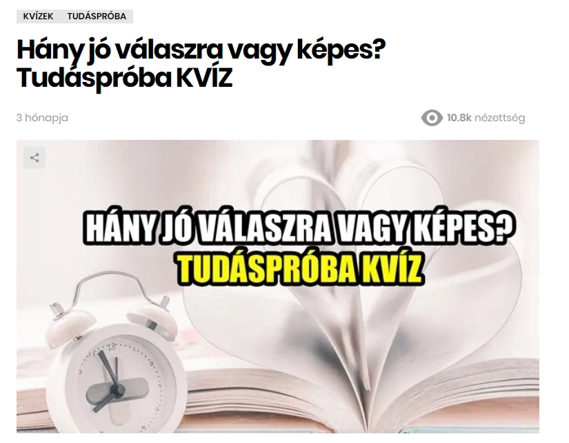 A Kvízmester.comon megjelent a Hány jó válaszra vagy képes? Tudáspróba KVÍZ.