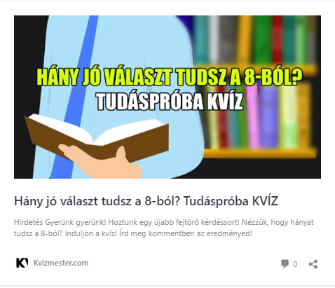 A Kvízmester.comon szeptemberben megjelent a Hány jó választ tudsz a 8-ból? Tudáspróba KVÍZ.