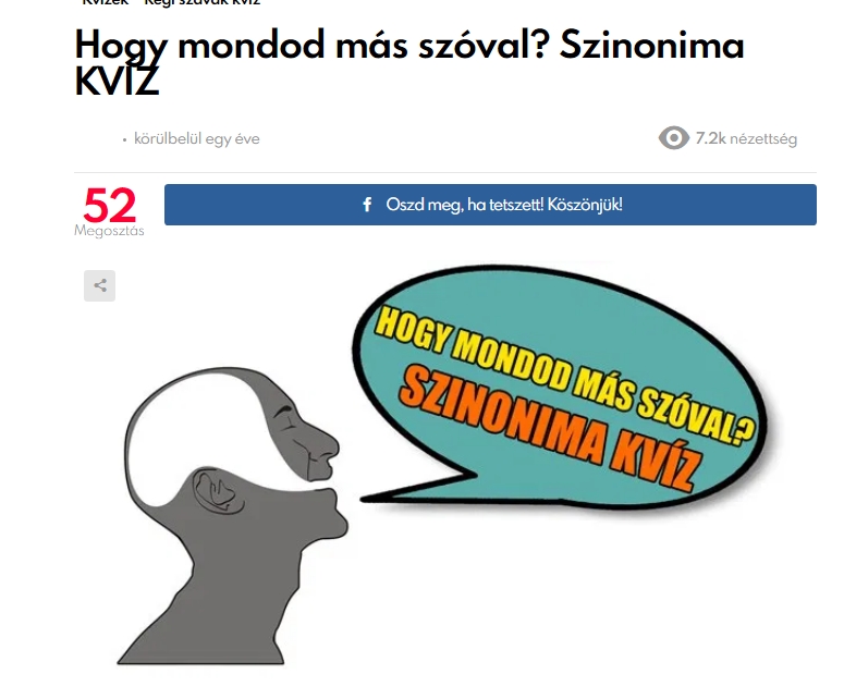 A Kvizmester oldalon megjelent a Hogy mondod más szóval? Szinonima KVÍZ!