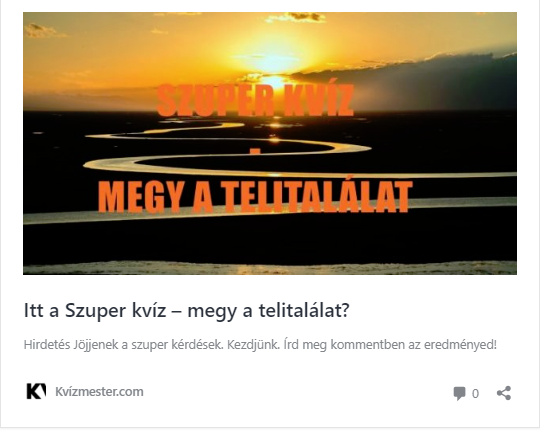 A Kvízmester.comon megjelent a Itt a Szuper kvíz – megy a telitalálat?!