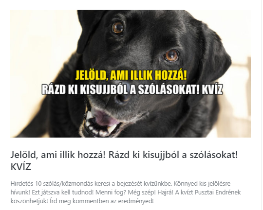 A Kvízmester.comon megjelent a Jelöld, ami illik hozzá! Rázd ki kisujjból a szólásokat! KVÍZ!