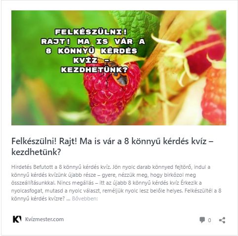 Vasárnap röviddel 12 után a Kvízmester.comon megjelent a már jól megszokott 8 könnyű kérdés kvíz.