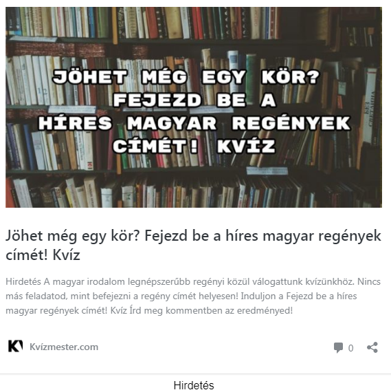 A Kvízmester.comon megjelent a Jöhet még egy kör? Fejezd be a híres magyar regények címét! Kvíz.