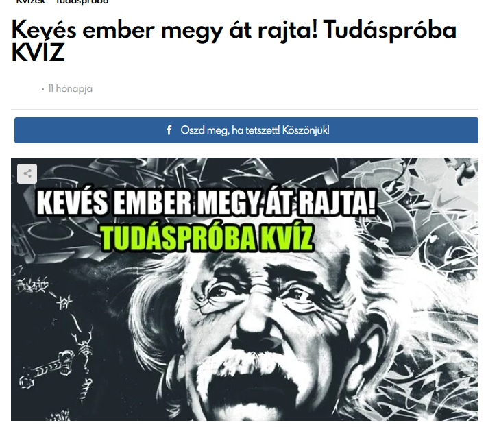 A Kvízmester.comon megjelent a Kevés ember megy át rajta! Tudáspróba KVÍZ.