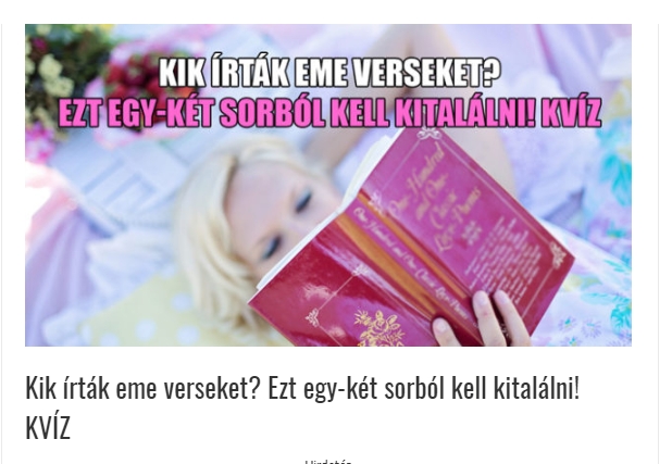 A Kvízmester.comon megjelent a Kik írták eme verseket? Ezt egy-két sorból kell kitalálni! KVÍZ.