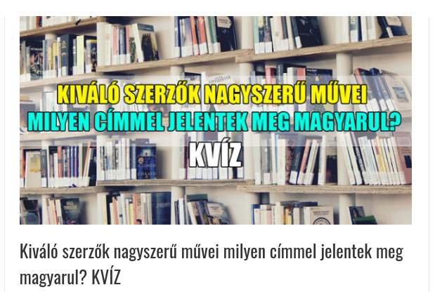 A Kvízmester.comon megjelent egy érdekes KVÍZ, aminek a címe: Kiváló szerzők nagyszerű művei milyen címmel jelentek meg magyarul?