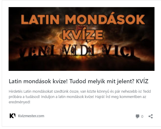 A Kvízmester.comon megjelent a Latin mondások kvíze! Tudod melyik mit jelent? KVÍZ!