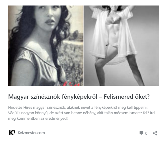 A Kvízmester.comon megjelent a Magyar színésznők fényképekről Felismered őket?.