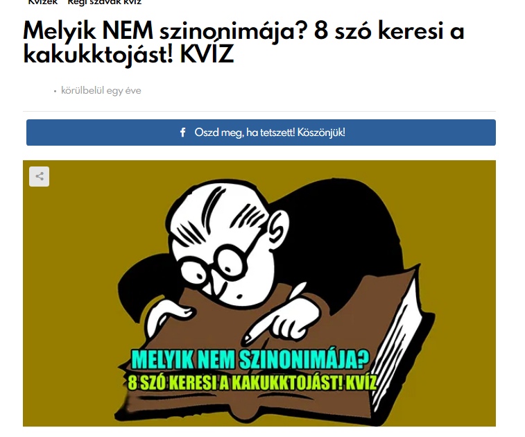 A Kvízmester.comon megjelent a Melyik NEM szinonimája? 8 szó keresi a kakukktojást! KVÍZ.