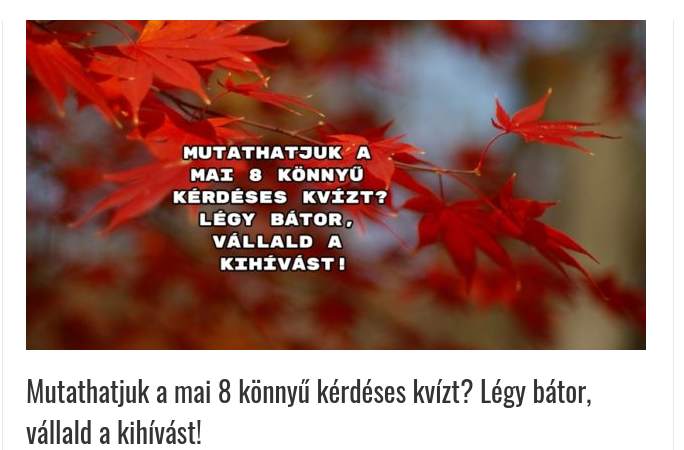 A Kvízmester.comon megjelent a Mutathatjuk a mai 8 könnyű kérdéses kvízt? Légy bátor, vállald a kihívást!