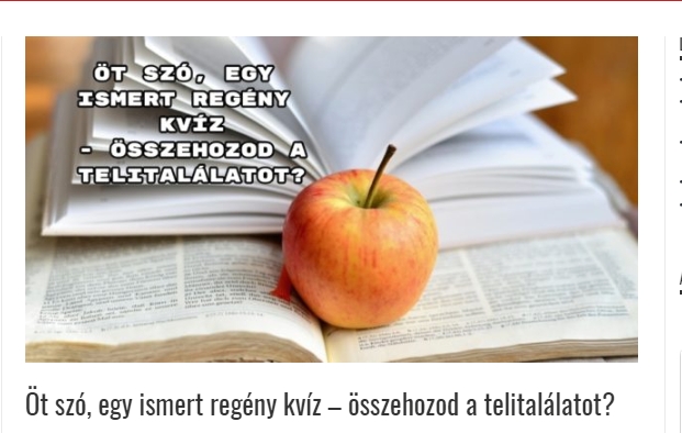 A Kvízmester.comon megjelent az Öt szó, egy ismert regény kvíz – összehozod a telitalálatot?.