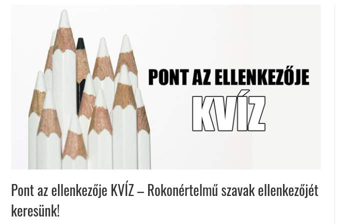 A Kvízmester.comon megjelent a Pont az ellenkezője KVÍZ – Rokonértelmű szavak ellenkezőjét keresünk! Megy a telitalálat?