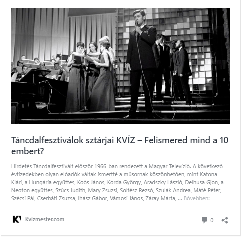 A Kvízmester.comon megjelent a Táncdalfesztiválok sztárjai KVÍZ – Felismered mind a 10 embert?