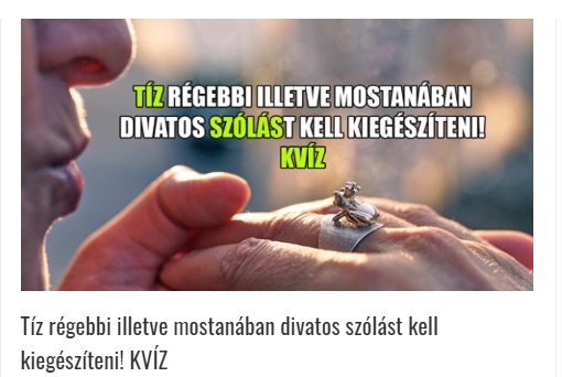 A Kvízmester.comon megjelent a Tíz régebbi illetve mostanában divatos szólást kell kiegészíteni! KVÍZ.