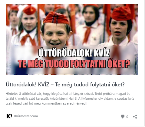 A Kvízmester.comon megjelent az Úttörődalok! KVÍZ – Te még tudod folytatni őket?.