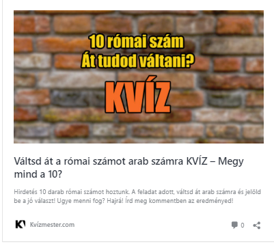 A Kvízmester.comon megjelent a Váltsd át a római számot arab számra KVÍZ – Megy mind a 10?.